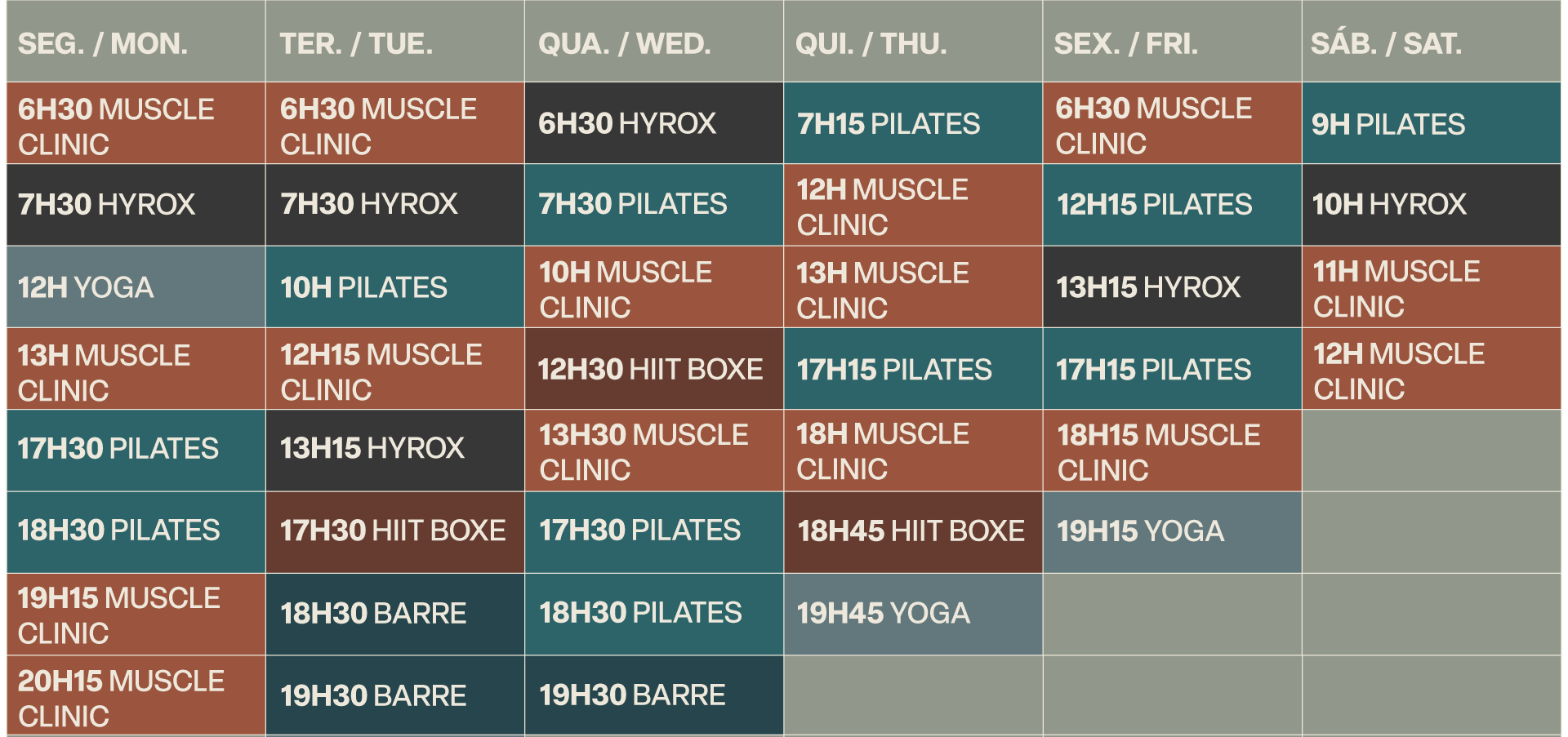 Todas as aulas têm um limite de cinco pessoas e uma duração de 45 minutos. Aulas sujeitas a alterações.